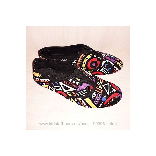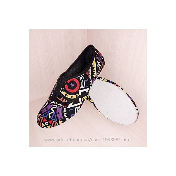Оригинальные и необычные мокасины, яркая расцветка. Материал изделия - плотный текстиль. Материал подошвы - ПВХ. Размеры (длина стельки):36 -41рр. Количество товара ограничено (уточняйте)!
