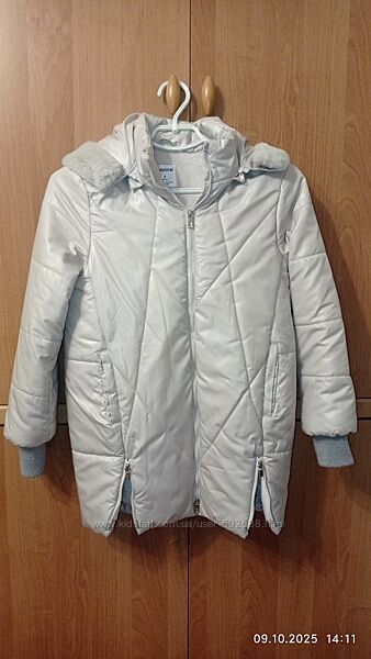 Молочная - 134-146, на теплую зиму или осень. Капюшон и мех отстёгиваются.
