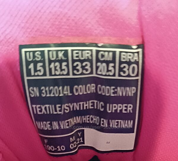 Размер 33 (UK 13,5, US 1,5), по стельке от края до края 21,5см, ширина стельки в самом широком месте 8см