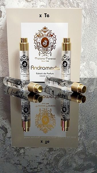 Это Оригинальный Парфюм ( в смысле жидкость ) Tiziana Terenzi которую мы безвоздушно наливаем из Полноразмерного флакона ОРИГИНАЛА Tiziana Terenzi Andromeda объёмом 100мл в колбу 11 мл - которую отдельно заказываем у Украинского производителя.