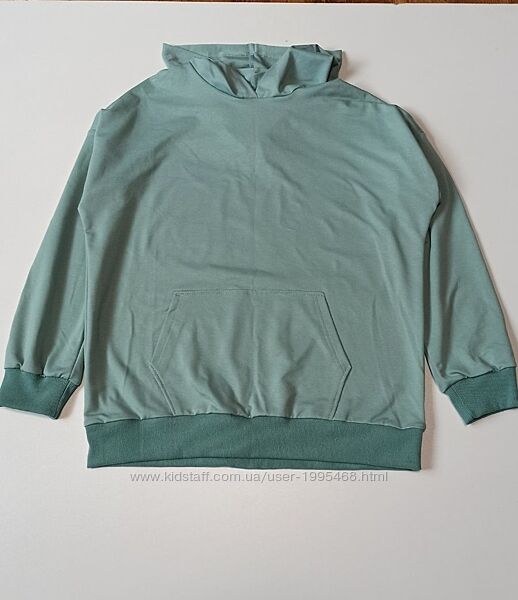 Весняний спортивний костюм оливкового кольору. Тканина - турецька двонитка, 85% бавовни, 15% віскози. М´який, приємний до тіла, легкий. На худі накладний карман кенгуру, в штанях врізні кармани. Манжети на худі і штанях - щільні, виріб триматиме форму.Новенький, я прикро пролетіла з розміром.