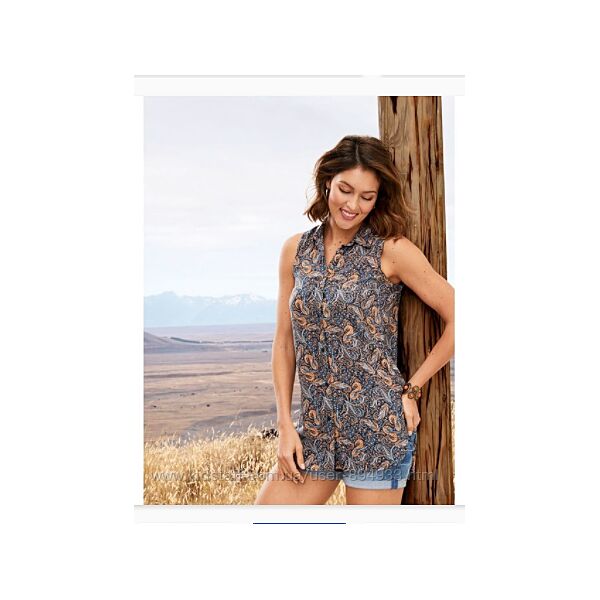 Красивая блуза рубашка туника вискоза Esmara, Германиялегкий круглый подол с разрезами ,спинка немного удлиненная, на пуговицах , материал очень нежный и приятный к телуМатериал: