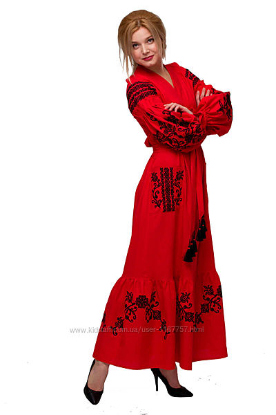 Сукня має потайні застібки-кнопки , пояс прикрашений китицями, пишні рукава з при зібраними манжетами. Вишита сукня «Східний сад» стане окрасою у твоєму гардеробі! Її можна вдягати, як з поясом так і без.Сукня вишиванка довжини максі, незвичного крою під пояс та з пишними рукавами оздобленими вишивкою “Дерево життя”, низ сукні оброблений широкою вишитою рюшою. Сукня оздоблена пташечками, квітами, пишним листям та пуп’янками майбутніх плодів – усі елементи вишивки в поєднанні нагадують справжній рясний Сад, а незвичний крій додає присмаку Сходу. Золота вишивка на чорному лляному полотні має не лише чудове поєднання, а й символізує багатство та достаток.