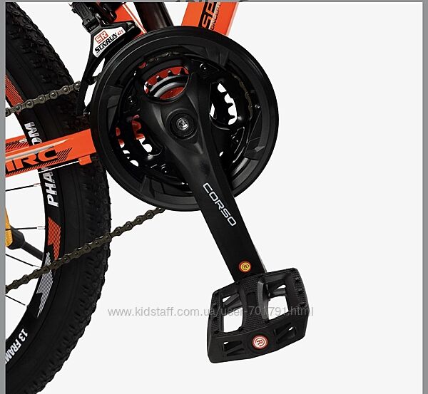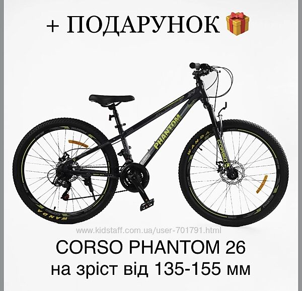 Не меншої уваги заслуговують і її технічні характеристики. Підлітковий велосипед Corso Phantom 26 дюймів має сталеву раму, що добре пригнічує вібрації та якісну систему амортизації.