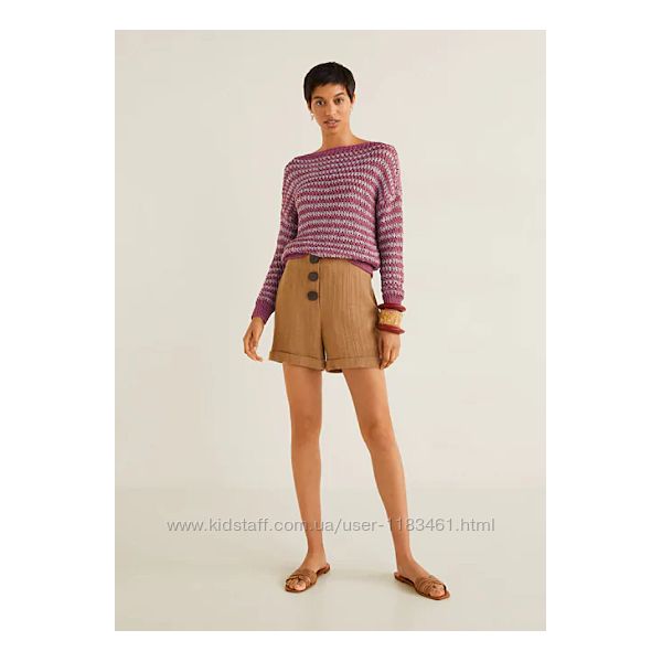 Джемпер трикотажный в полоску Mango ИспанияТрикотажная ткань открытого типа. Свободная вязка. Принт в полоску. Вырез-лодочка. Длинные рукава. Края связаны резинкой.