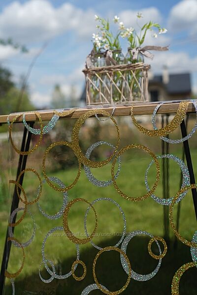 Подробное описание: Мяке скло з лазерним малюнком золотих та срібних кіл, ширина 80см, 4070G
