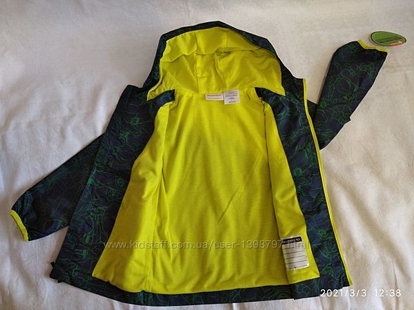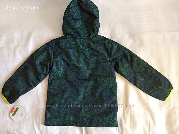 Легкая ветровка - дождевик для мальчика зеленого цвета, капюшон не отстегивается, верх тонкая водоотталкивающая ткань, тонкая подкладка (без утеплителя), два кармана, застежка на молнии. Сезон теплая весна-осень или прохладное лето.Состав: верх: 100% полиэстер; подкладка: 100% полиэстер
