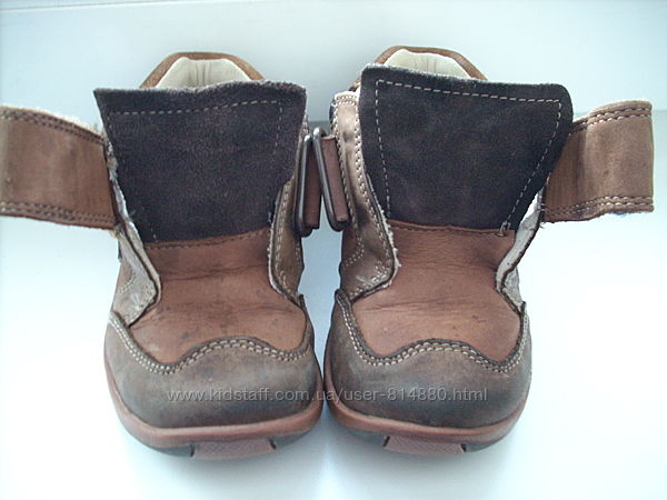 Ботинки демисезонные ТМ Clarks, в ооочень хорошем состоянии, размер 7 (наш 24)- по стельке 15,5см. На ножку 14,2см. Везде натуральная кожа, нубук, язычок замша, стелька натуральная кожа, внутри на подкладке с утеплением. Липучки плотные и широкие, хорошо зафиксируют ножку детеныша. Пятка жесткая. Подошва-в идеальном состоянии !Носил сын с удовольствием. Очень качественные, удобные, комфортные ! Можно носить до глубокой осени.