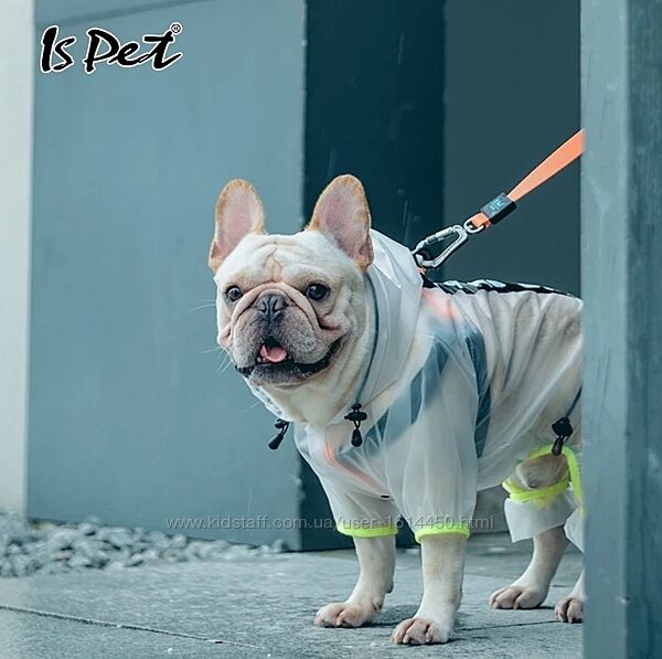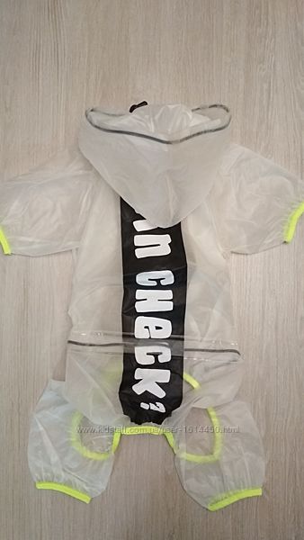 Абсолютно водонепроницаемый комбинезон для комфорта нежных курносиков! Выполнен из качественного, плотного и эластичного полиуретана. Прозрачный! Стильный и продуманный дизайн позволяет одевать шлею под комбинезон - для этого на спинке предусмотрено специальное отверстие. Имеются резинки-стяжки на капюшоне и в области талии для лучшей фиксации. Застегивается на груди на кнопочки. Комбинезон надёжно защищает от влаги и грязи! Подойдёт для пород - сиба ину, корги, французский бульдог, мопс, кокер спаниель и другие.