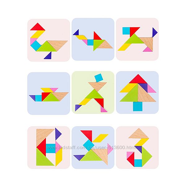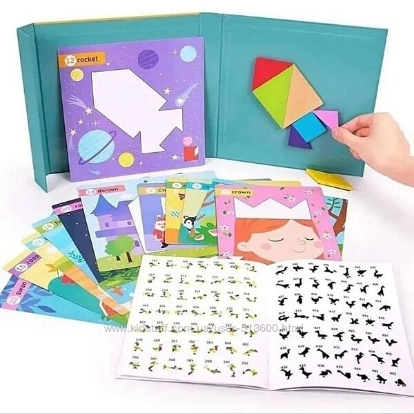 Подробное описание: Деревянная магнитная 3D Головоломка Танграм . С карточками и образцами