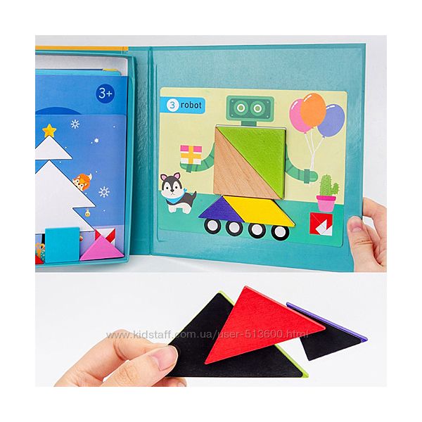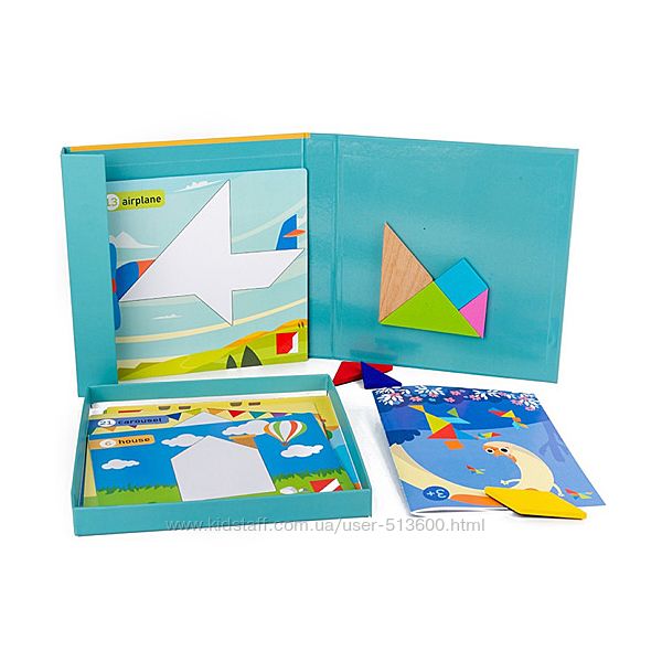Деревянная магнитная 3D Головоломка Танграм . С карточками и образцами