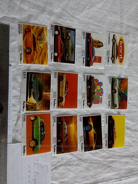 Вкладыши от жвачек , машинки,12 видов, 5.