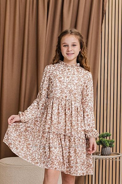 Платье для девочки с рукавом в цветочек, на рост 122-146