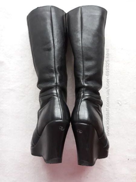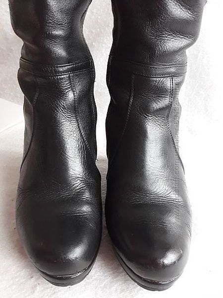 Предлагаю черные зимние сапоги из натуральной кожи. Застежка молния, внутри мех натуральная цигейка. Б/у аккуратно, состояние очень хорошее, смотрите фото.Размер указан 38. Длина стельки внутри до кончика носка 25 см, ширина 8 см, высота танкетки 9 см, из них платформа 2 см. Высота сапога от пола 42 см, окружность щиколотки 27 см, окружность верха 35+2 см.