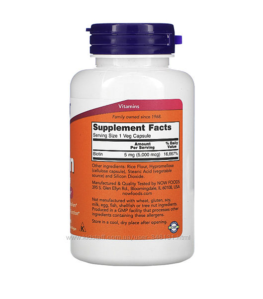 2) Now Foods, Биотин, 5000 мкг, 120 капсул - 410 грн