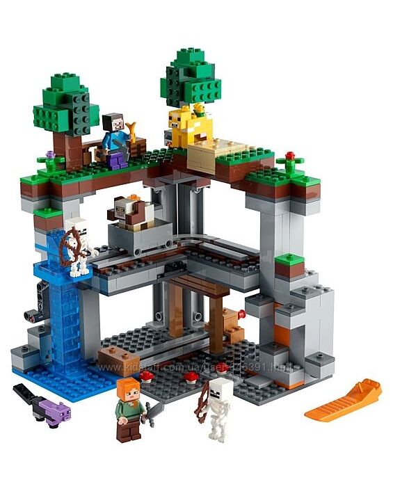 Этот набор со множеством невероятных деталей, представляющий собой реальное воплощение игрового мира, приглашает вас во вселенную Minecraft™. Здесь вам предстоит заглянуть во все уголки и изучить крутые функции трехуровневой структуры: лифт за водопадом, готовые обрушиться рельсы, скользящие земляные кубики и, конечно, функцию взрыва.Стив и Алекс уже готовы к новым приключениям в компании скелета, рогатой овцы, окрашенной кошки и цветочной коровы.