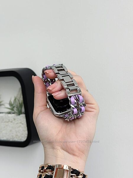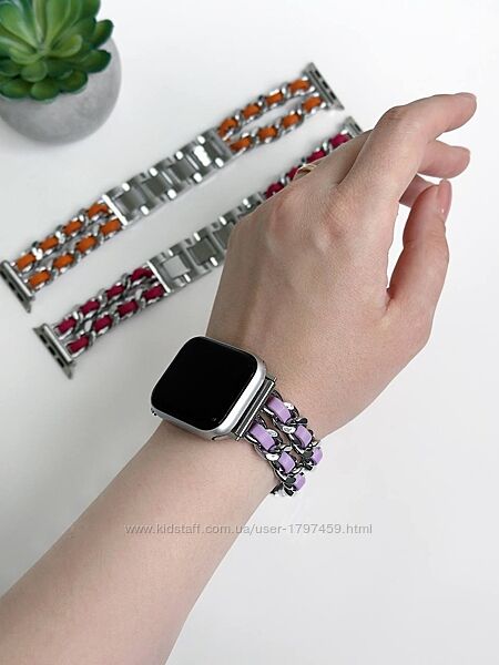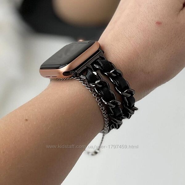Подробное описание: Металічний ремінець з шкіряними вставками для Apple watch