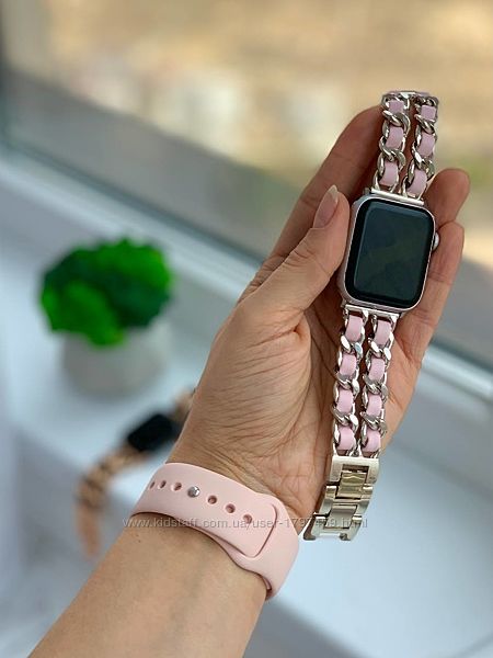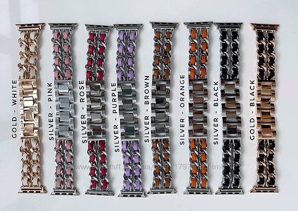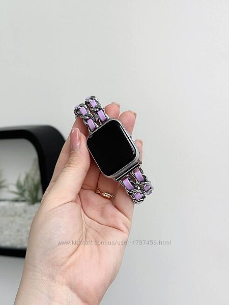 Металический, легкий ремешок с «кожаными вставками»Ремешки Desay Chanell - для Apple Watch - 38/40/41 mm та 42/44/ 45 mm