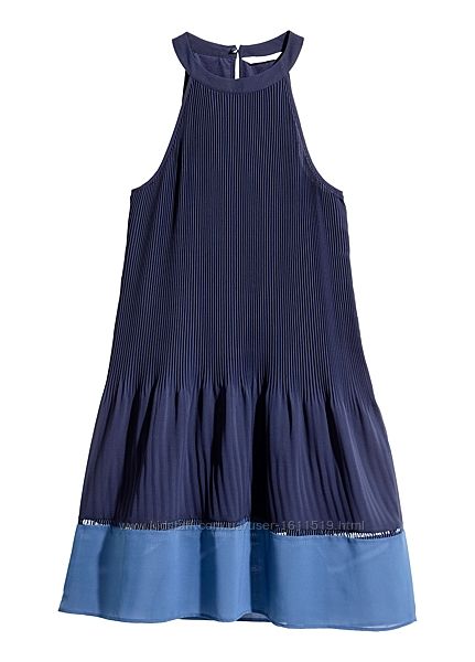 Сукня пліссе від шведського бренду H&M. Вільний крій. По спинці застібається на гудзик. Верх: щільний шифон. Є еластична підкладка. Стік, без бірок.(4763)