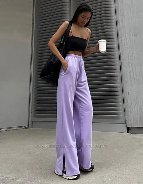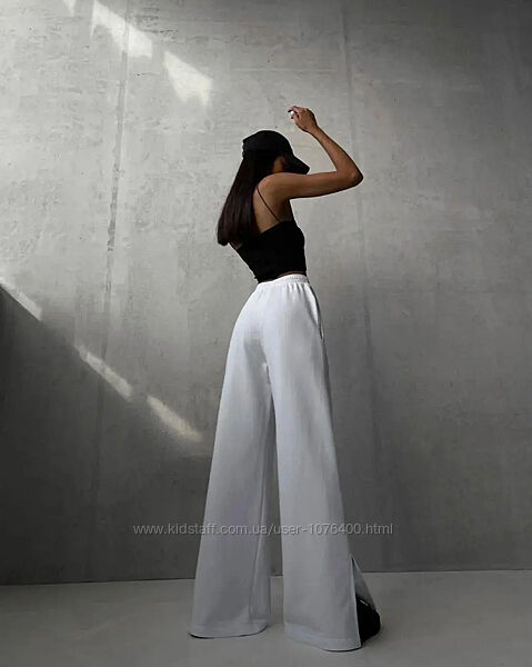 Стильні універсальні спортивні жіночі штани палаццо з розрізами з боків