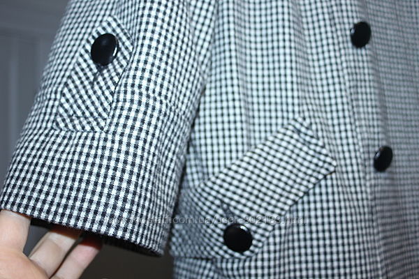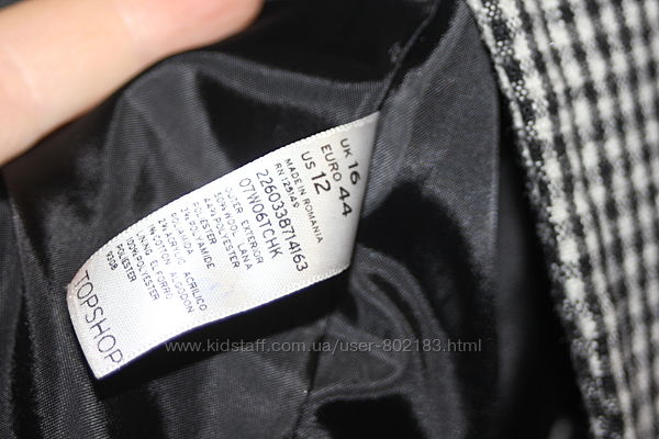 Стильное короткое пальто в клетку Topshop 50% шерсть размер 44 на 50. В идеальном состоянии. Очень интересная модель. Отличный состав 50% шерсть, 44% полиэстер, 3% полиамид, 2% акрил, 1% коттон. Длина 75 см, ширина в груди 61 см, ширина в талии 60 см, ширина плеч 43 см, длина рукава 52 см.Цена 475 грн.