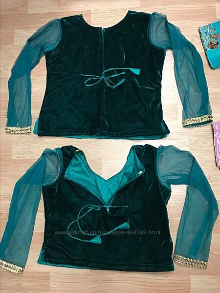 Продам чоли к сари привезены из Индии, в очень хорошем состоянии без дефектов, имеется 2шт. Замеры (L-длина ПОГ-полуокружность груди ПОн-полуокружность по низу ПОТ-полуокружность талии) смело можно (+-) 1-2смтемно/зеленое бархатное рукава-фатин, украшено несколько множеством камней (состояние отличное/как новое)