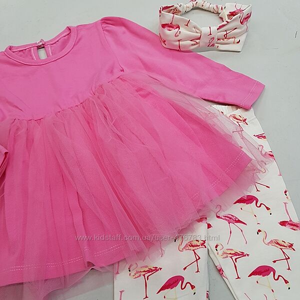 Яскравий комплект для дівчаток. Комплект складається з туніки з фатином, легінсів та пов´язки.Склад: 100% бавовна