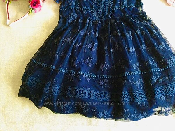 MATALAN. ярко- синее. Цвет Океан. гипюровое. ажурное. веницианское дорогое кружево.Красивенный цветочный принт. Полностью Натуральное! Включая подкладочку хлопок 100%! Прекрасно для школы.