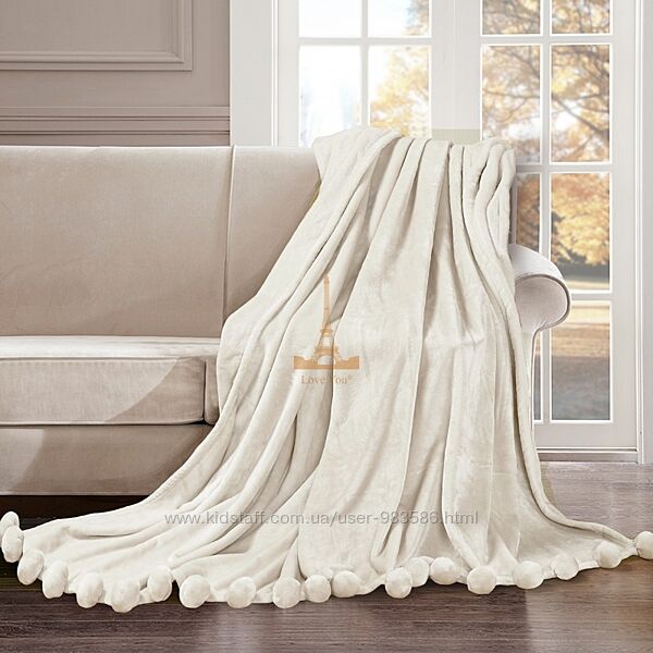 Плюшевые пледы с бубонами бренда Love you роскошно смотрятся и делают интерьер дома завершенным, уютным. На ощупь пледы мягкие и нежные, очень приятно ими укрываться и лежать на них, как на покрывалах.