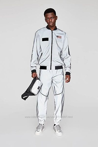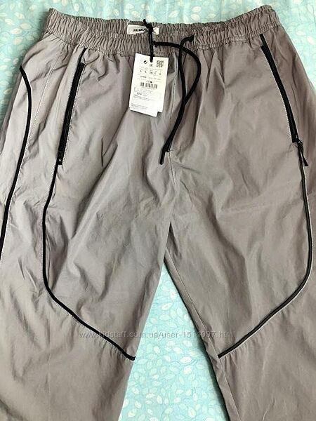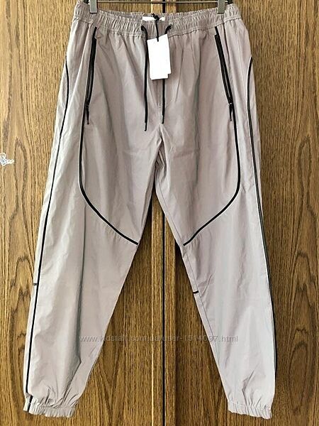 Брюки джоггеры с контрастной окантовкой. Светоотражающий эффект, боковые карманы, эластичная талия и низ.Размер указан EUR/L