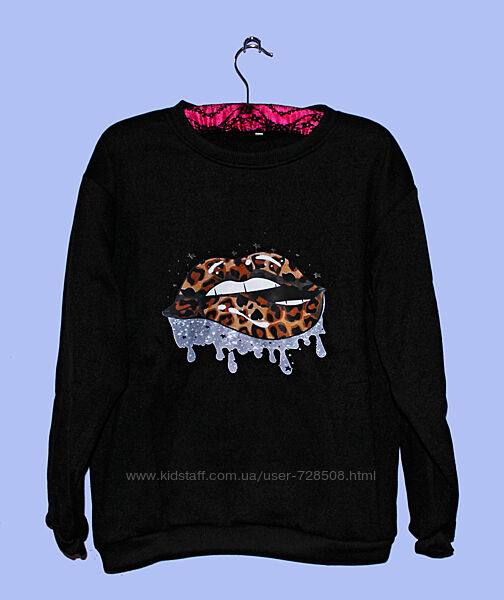 Подробное описание: Shein. Англия. Толстовка оверсайз с леопардовым принтом губ.