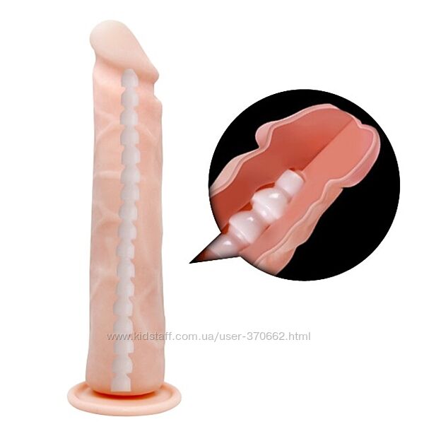 Фалоімітатор на присосці тілесного кольору з рельєфною поверхнею.