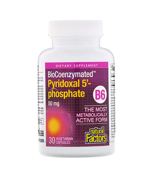 # Natural Factors, BioCoenzymated, Вітамін B6, Піридоксаль-5-фосфат, 50 мг, 30 вегетаріанських капсулОПИС: