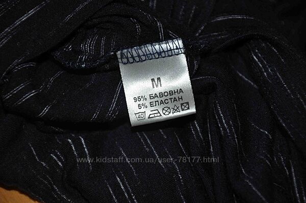 Темно-синій з білими горизонтальними лініями реглан DayToDay, 95% бавовна, 5% еластан. Розмір М, класний, легкий, вільного крою. Довжина 61см, напівобхват під рукавами 50см, рукав від плечевого шва 61см., дуже добре тягнеться. Стан ідеальний.
