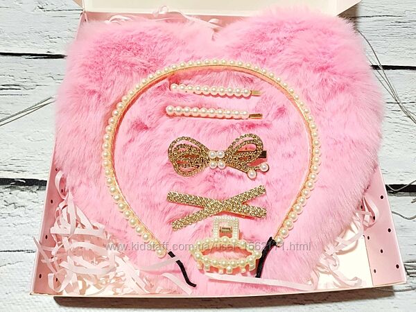Подробное описание: Дитячий подарунковий бокс подарунок для дівчинки сумка серце заколки обруч