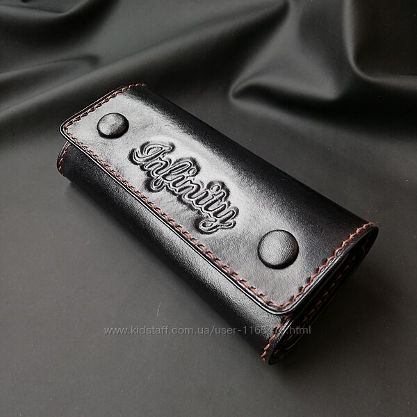 Особенности: ключница прошита по всему периметру, закрывается на две кнопки.