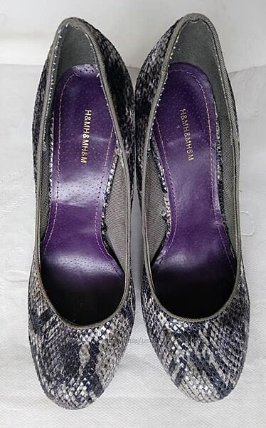 Подробное описание: Туфли H&M р.40 каблук-шпилька черно-серые змеиная кожа