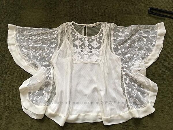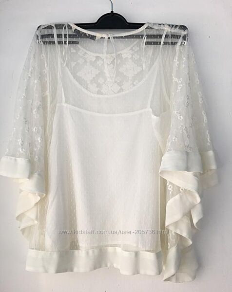 Нежная, кремовая блуза, с вышивкой, двойная с батистовой маечкой, Zara, размер L, можно и на М, пошив свободный, рукав в форме летучей мыши. Замеры:Пог- 47см