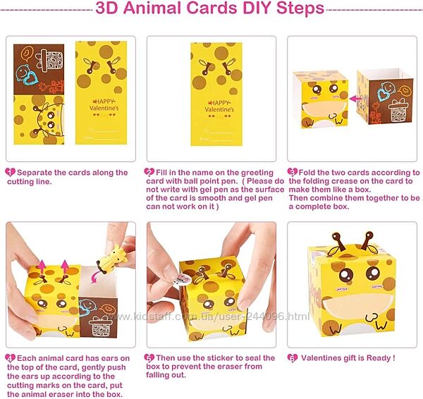 Эти подарки для детей украшены симпатичными трехмерными изображениями слона, жирафа, совы, щенка, обезьяны, коровы и бегемота. На каждой детской открытке есть место для их имени и приятного личного послания одноклассникам и друзьям. Более того, на каждой карточке с животными для детей есть тот же ластик-пазл с животными, который можно положить в коробку с животными в качестве милого подарка.