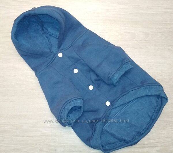 Качественная, стильная, теплая толстовка для собак. 100% коттон! Внутри флисовый начес. Застегивается на 4 кнопочки на груди. Объемный капюшон, настоящий карман на спинке. Плотная и очень приятная на ощупь, простая и удобная! Идеально подойдет для пород французский бульдог и мопс. В наличии три цвета - терракотовый, джинсовый, серый.