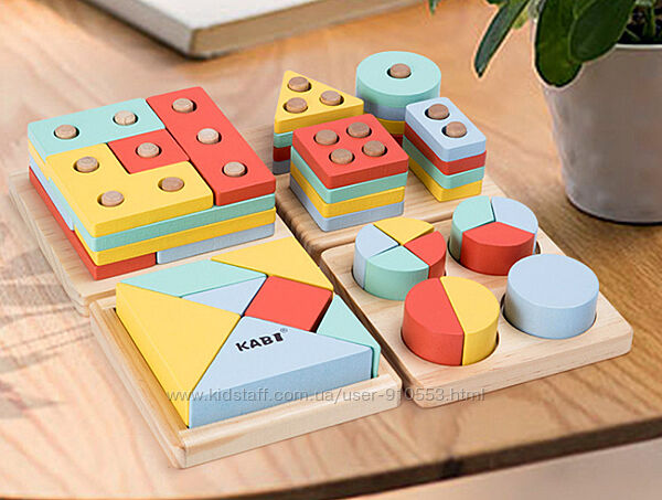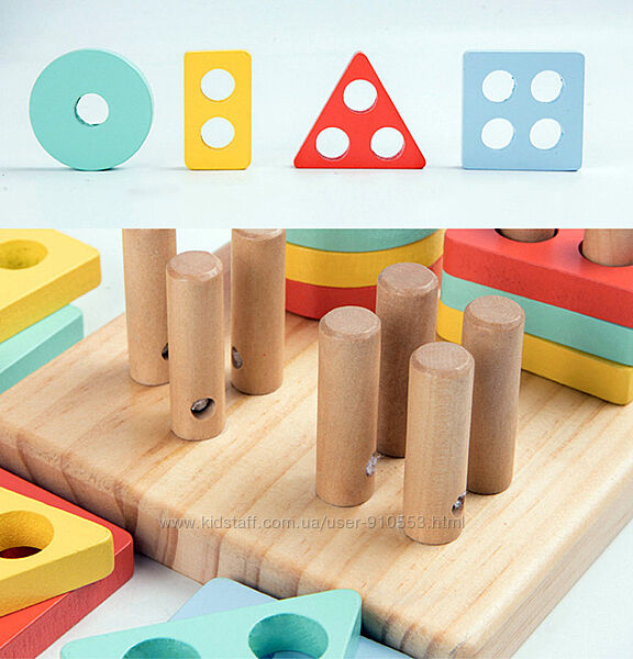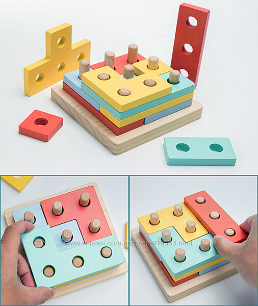 Подробное описание: Деревянная игрушка Монтессори Геометрика сортер 4в1