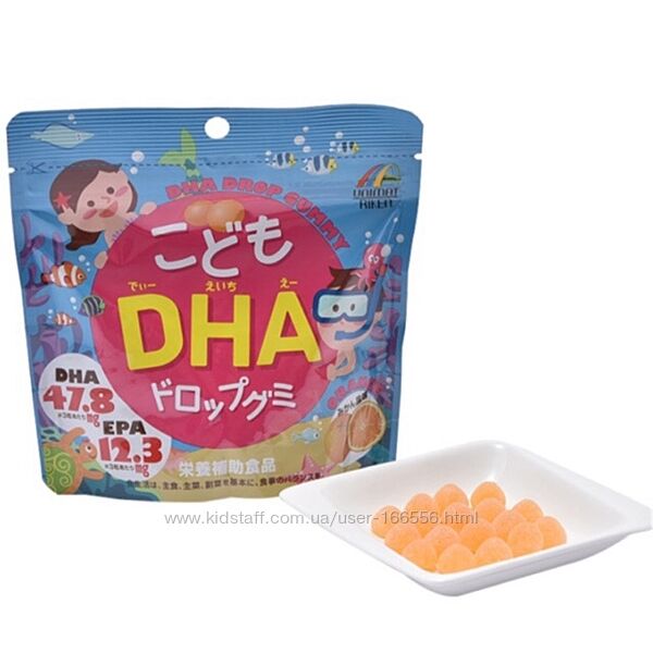 ОРИГИНАЛ!!!Unimat Riken DHA Drop Gummy - детские жевательные витамины со вкусом апельсина.