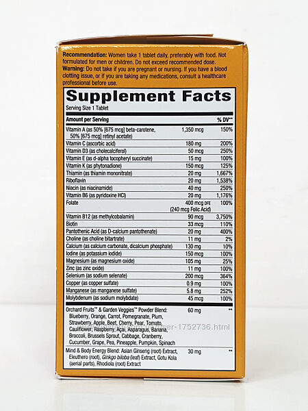Комплекси ультра-ефективних вітамінів та мінералів з харчовими сумішами Nature´s Way (США) Alive! Ultra Multivitamin, 60 таблеток.Для жінок - 920 грн.