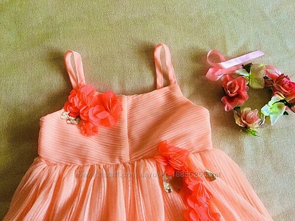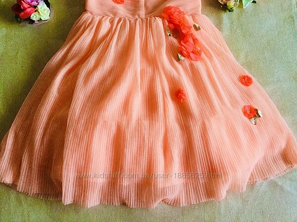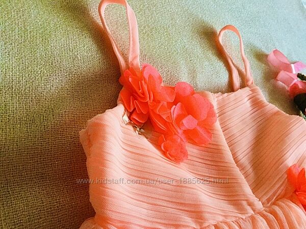 H&M ярко- неоновое. Абрикосовое. Платье- сарафан в мелкую плиссировку с коралловыми шелковыми Цветами -украшением в 3-D формате. Цветочки порхают, при каком движении. ПОТРЯСАЮЩЕЕ. В середине каждого цветочка золотые нити. Супер- Пышное , многочисленные подъюбники идеально держат формуСостояние нового. Хоть бирочку вешай. длина 75; подмышки 32,5