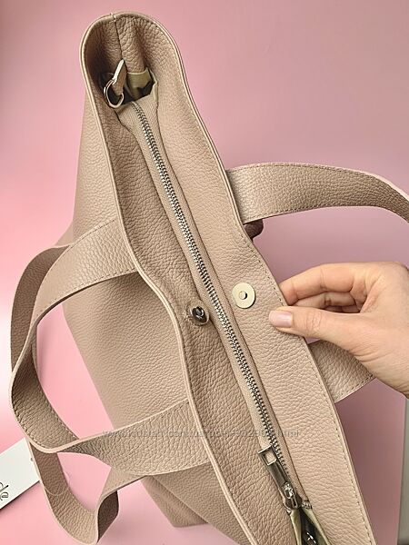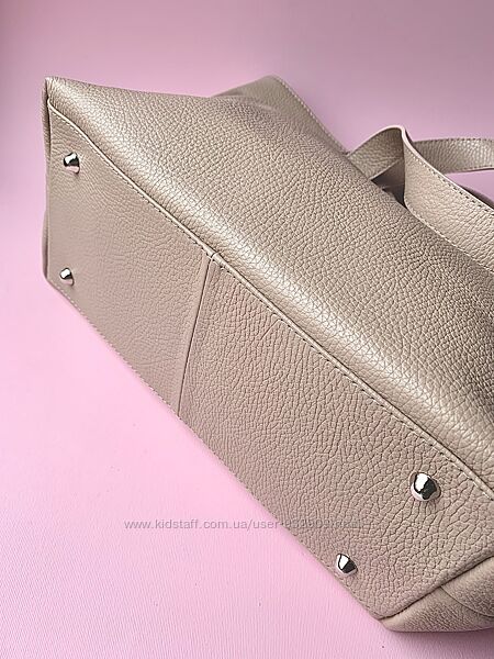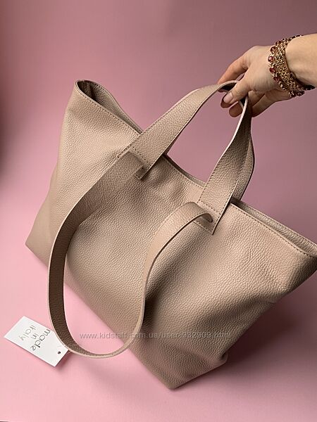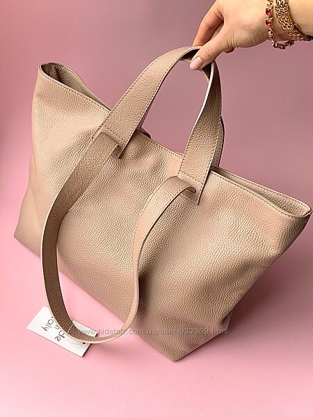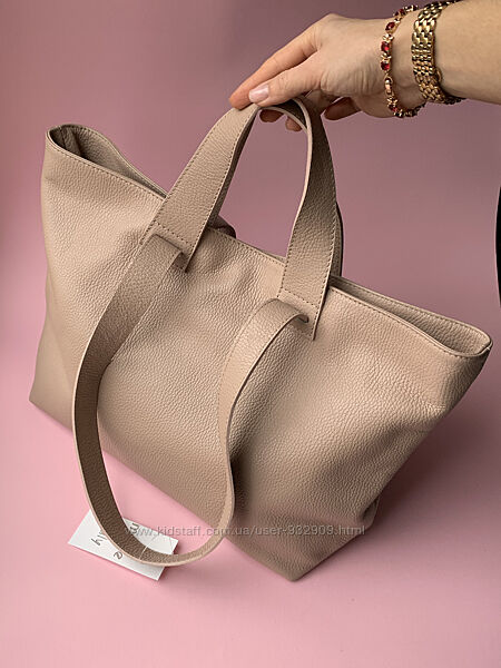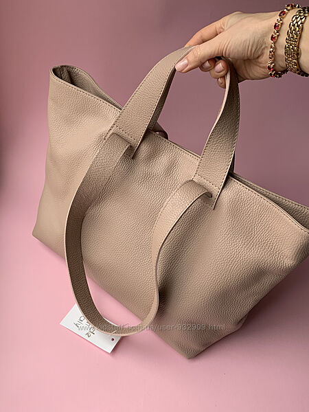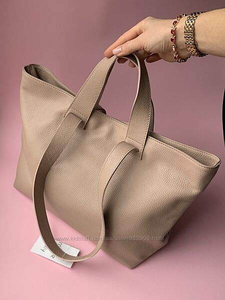 Подробное описание: Кожаная женская большая сумка шопер с двумя парами ручек. Пудра