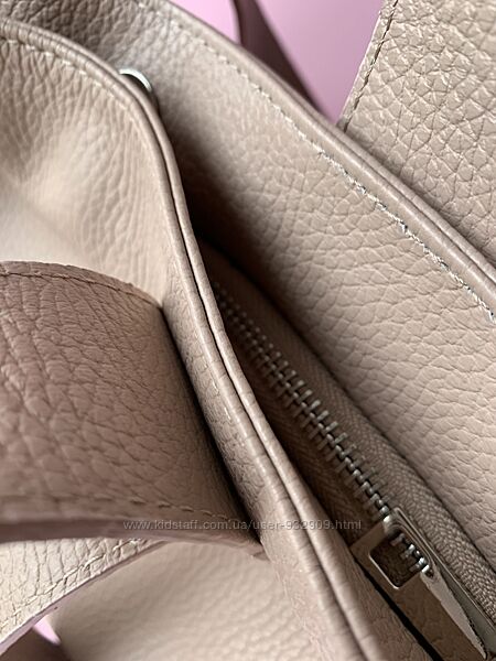 Очень красива кожаная сумочка в пудре с розовинкой.
