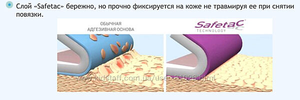 Это уникальный медицинский продукт шведской компании Molnlycke HC. Представляет собой тонкую самоклеющуюся повязку, покрытую мягким силиконовым покрытием Safetac, которое обеспечивает:
