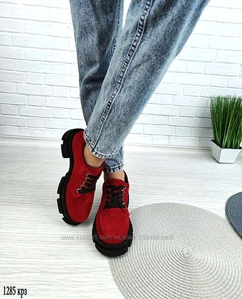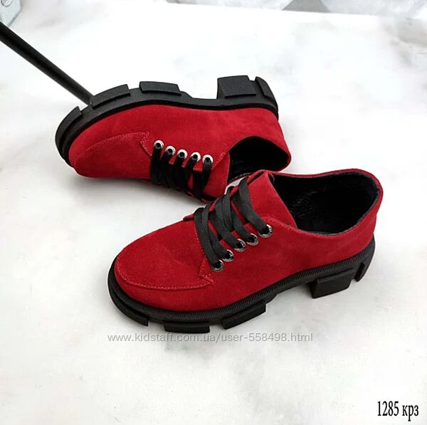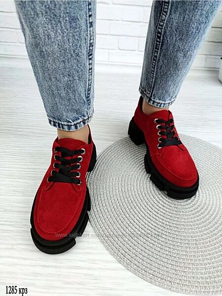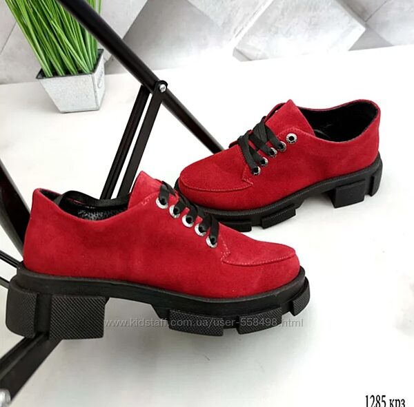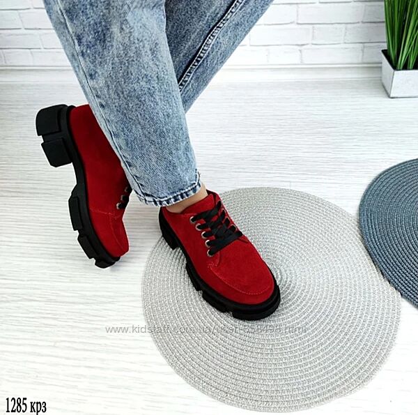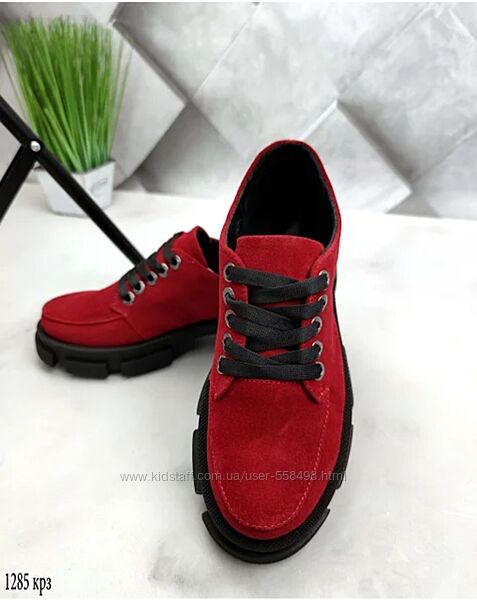 Туфли замшевые женские на шнуркеНатуральная кожа!