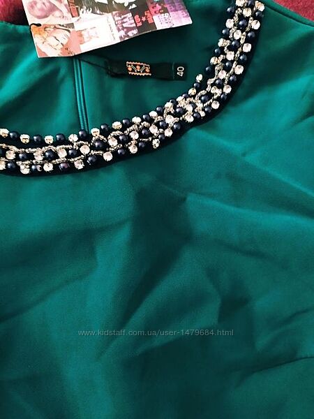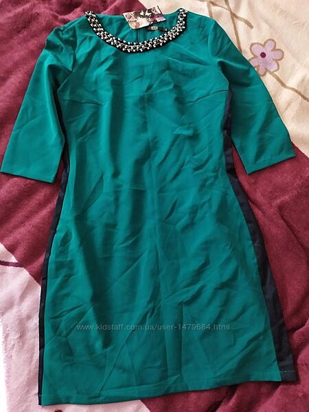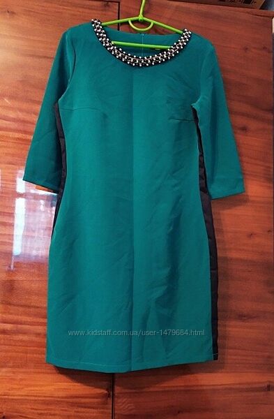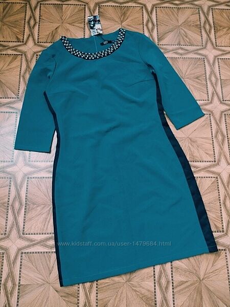 В нашем магазине грандиозная распродажа!!Смотрите др. лоты! Цены снижены!! Красивое платье изумрудного цвета ,Турция,р. 40, по бокам вставки темно-синие, сзади на змейке, по вороту красивое украшение. Материал мягкий, креп костюмка (крепшифон). На некоторых фото от освещения цвет меняется и оттенки бирюзы тяжело передать по фото. На манекене бирюза синяя, на других фото бледный, в реале цвет по ярче и можно сказать темно-бирюзовый с зеленоватым оттенком или изумрудный ,на фото более передался цвет, где приближенно. Качество отличное. Смотрите замеры!!40 р