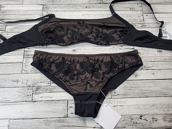 Мягкий комплект Anabel Arto. Мягкий бюстгальтер в виде топа на каркасах, для девушек со средним размером груди- чашка из сетки с вышивкой на подкладке из микрофибры (непрозрачная)